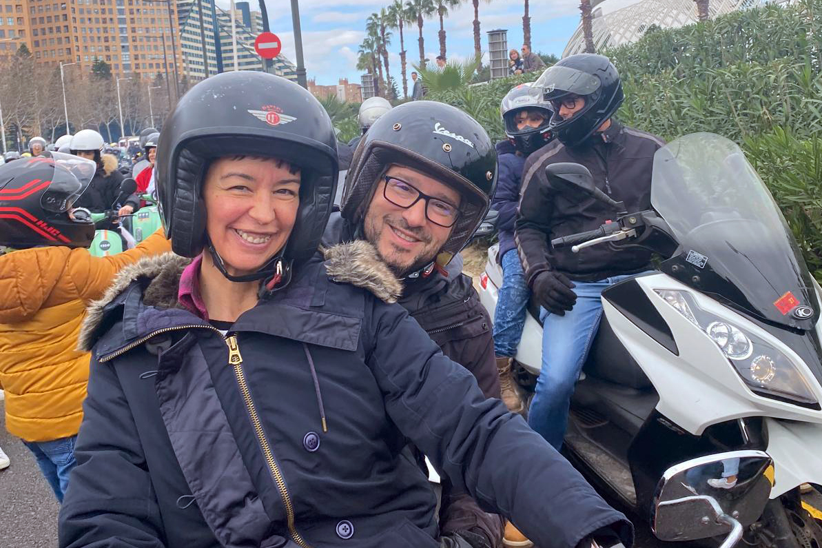 La ruta fue una auténtica pasada. Recorrer juntos algunos de los rincones más emblemáticos de Valencia, en caravana, con esa mezcla de tradición fallera y cultura motera, es algo que no se puede explicar con palabras, hay que vivirlo. La gente nos saludaba, sacaba fotos, y comentaban el olor a motor de 2 tiempos que inundaba la ruta.